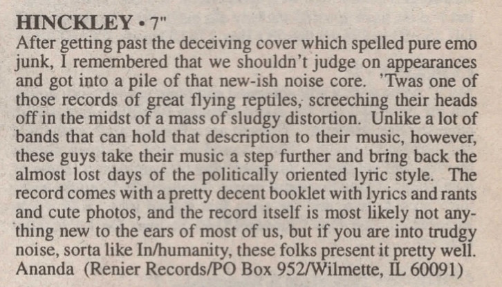 empty i’m currently reading thru HeartattaCk, which i will link here for any unfamiliar and i recommend anyone check out in depth if they’re interested in this style of music. i’ll post some selected reviews, graphics and such below to give you a sense of what it’s like. “HeartattaCk was a zine run by Kent McClard and the legendary Ebullition records crew from 1994-2006, over a span of 50 issues. It was originally created to be a counterpart to MRR (Maximum Rock & Roll); one that only reviews D.I.Y records without a UPC barcode. HeartattaCk was a number of things; a place to find interviews with bands and activists, record/zine reviews, columns, pictures, political discussions and information about the 90s HC scene. As it stands, HeartattaCk is the missing link for information and context about bands, the scene and the general atmosphere of hardcore culture in the 90s. It really is a goldmine and an important resource to anyone looking to learn more about D.I.Y hardcore” http://heartattackarchive.com/